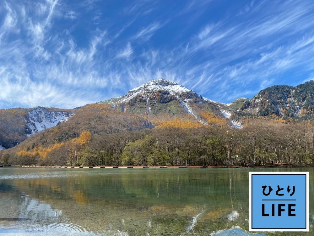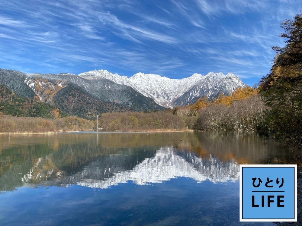 紅葉の時期に上高地を訪れた人しかみることができない絶景です。