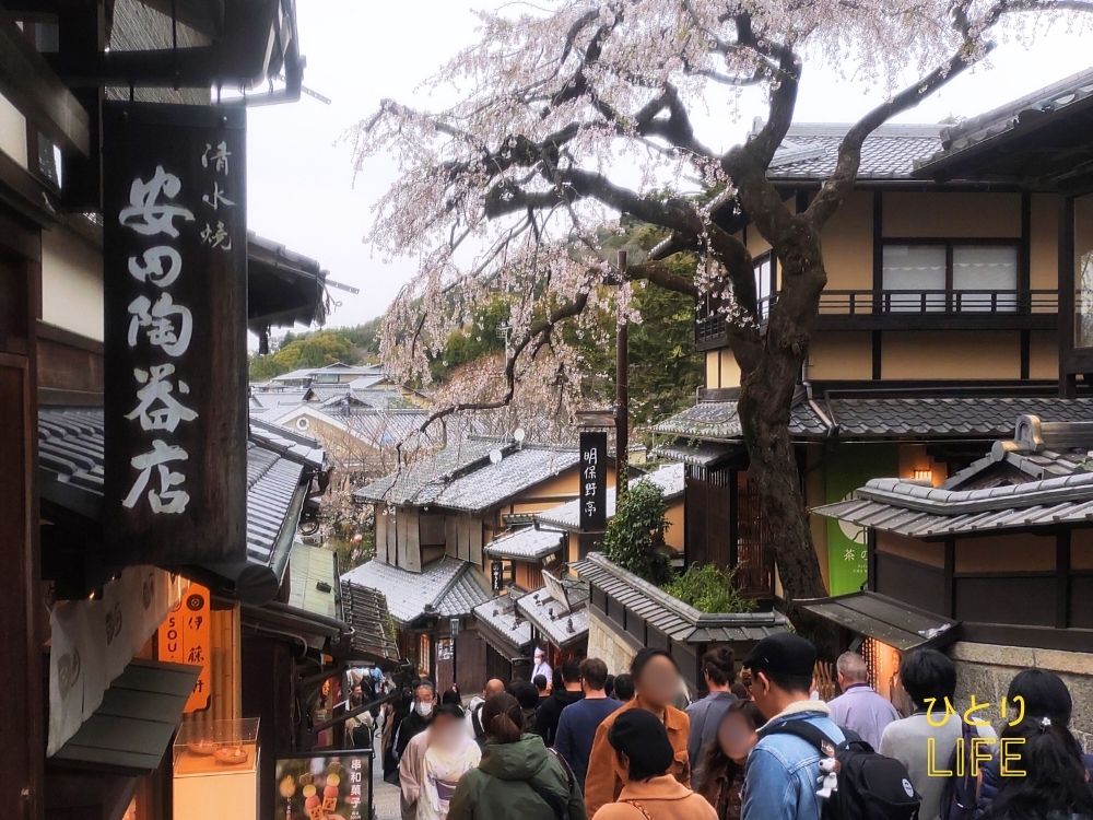 京都駅から清水寺までは徒歩約40〜50分。直線距離にして約2.8キロ離れています。徒歩圏とは言えず、地下鉄やバス、タクシーなどで行くのが一般的ですが、歩くのが好きな方なら徒歩もあり。道中で見える町並み、石畳、古い屋根、そして東山の空気――すべてが“旅の雰囲気”を盛り上げてくれます。