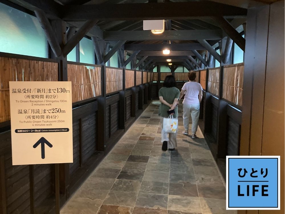 温泉に行くにはホテルから外に出て、2~4分ほど歩く必要がありますが、通路には屋根が設置されているので雨でも傘を差さなくて大丈夫です。